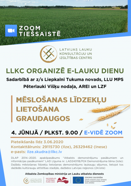 LLKC sadarbībā ar z/s Liepkalni Tukuma novads, LLU MPS Pēterlauki Višķu nodaļa, AREI un LZF aicina apmeklēt e- Lauka dienu par mēslošanas līdzekļu lietošanu graudaugos