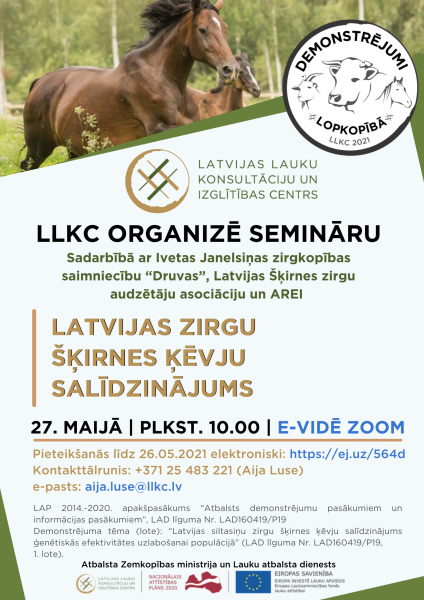 LLKC sadarbībā ar Ivetas Janelsiņas zirgkopības saimniecību “Druvas”, Latvijas Šķirnes zirgu audzētāju asociāciju un AREI aicina 27. maijā apmeklēt demonstrējuma semināru par Latvijas šķirnes ķēvju salīdzinājumu.