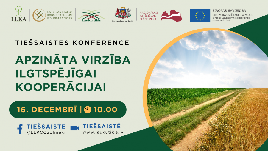 Konference no pulksten 10.00 būs skatāma vietnē www.laukutikls.lv, kā arī Latvijas Lauku konsultāciju un izglītības centra (LLKC) Facebook vietnē: /LLKCOzolnieki