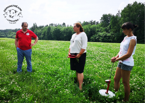 Lauka dienas apmeklētājiem tika skaidroti zelmeņu ražības faktori un vērtēts, cik hektāros aitu mātēm dienā vajadzība ganīties, lai tās uzņemtu nepieciešamo sausnas kilogramu daudzumu. Šajā Lauka dienas pasākumā tika demonstrēta kultivēto ganību zālāju sausnas ražas noteikšanas ierīce EC09 Electronic Platemeter, ar ko strādā LLKC konsultanti. Ganību apsaimniekošanai svarīga ir pareiza aploku noganīšana, lai ganāmpulks zāles resursu izmantotu maksimāli efektīvi. Šim nolūkam ganības racionāli ir dalīt porcijās un svarīgi darīt to precīzi, pēc nepieciešamā sausnas daudzuma konkrētajā zālāja konkrētajā brīdī konkrētajam ganāmpulkam. Ierīce izmantojama kultivētajos ganību zālājos, jo iekārtā mērīšanas sensori darbojas kopā ar ieprogrammēto formulu, kas izstrādāta, ņemot vērā zāles augstuma un blīvuma attiecību, un attiecīgi aprēķina sausnas daudzumu, par pamatu pieņemot šādu zālāju barības vērtību. Netipiskos ganību zālājos – pāraugušos, izdegušos vai tādos, kur aug ganībām nepiemēroti augi, iekārta nedos ticamu rezultātu, jo šādas vietas kvalitatīvas lopkopības skatījumā nevar tikt uzskatītas par kultivētām ganībām.