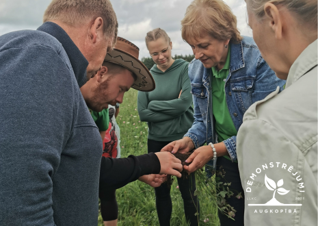 Lauka dienas turpinājumā LLKC Limbažu biroja augkopības konsultante B. Skujiņa iepazīstināja lauksaimniekus ar demonstrējuma “Optimāla augsnes pH līmeņa uzturēšana tauriņziežu-stiebrzāļu zalājos” ierīkošanas gaitu un iegūtajiem rezultātiem. Demonstrējums tika ierīkots 2022. gada pavasarī Ainažu pusē zemnieku saimniecības ”Punči” laukā. Demonstrējums ierīkots trīs variantos saistīgas smilts augsnē ar organiskās vielas saturu 3,8%:
