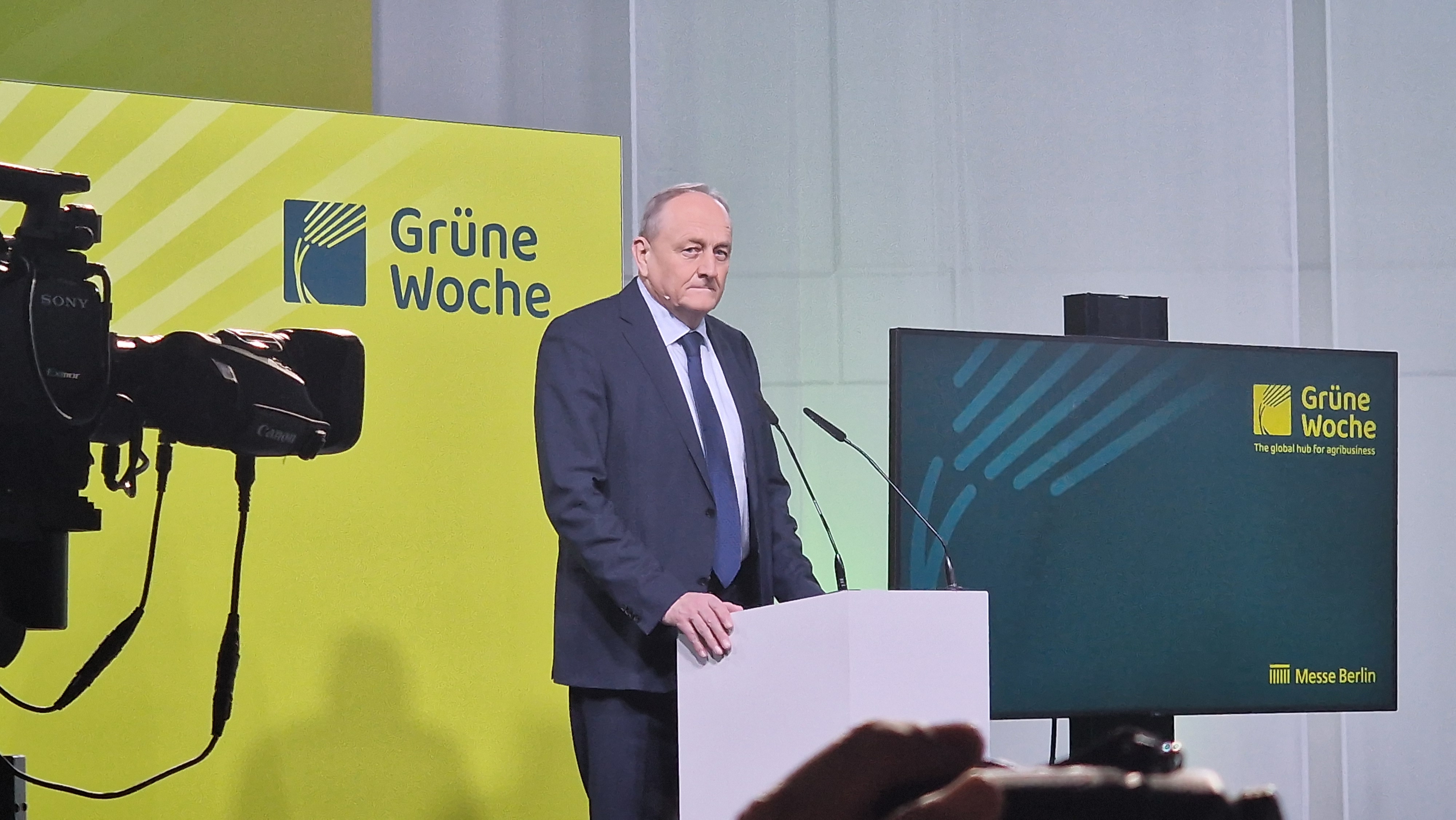 Akcīzes nodokļa atlaides dīzeļdegvielai arī bija galvenais jautājums, par ko izstādes atklāšanas preses konferencē runāja Vācijas Zemnieku apvienības priekšsēdētājs Joahims Rukvīds. Zemnieku protesti notiek jau kopš decembra, tajos apvienojot vairāk nekā 30 tūkstošus dalībnieku un 10 tūkstošus tehnikas vienību.