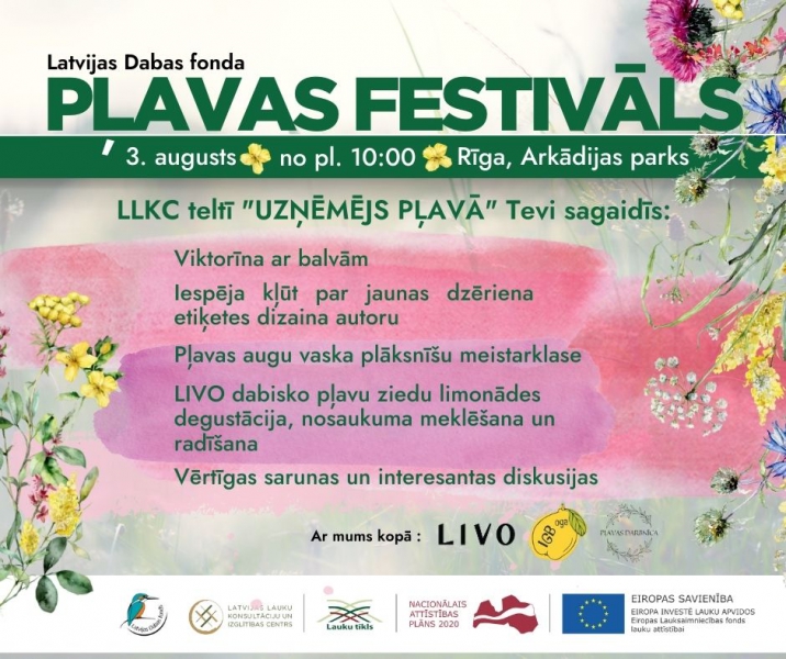 Jau otro reizi ikviens aicināts apmeklēt Pļavas festivālu, kas visas dienas garumā notiks 3. augustā Rīgā, Arkādijas parkā. Pasākumu rīko Latvijas Dabas fonds un tajā pirmo reizi piedalīsies arī Latviajs Lauku konsultāciju un izglītības centrs (LLKC) ar telti - "Uzņēmējs Pļavā".