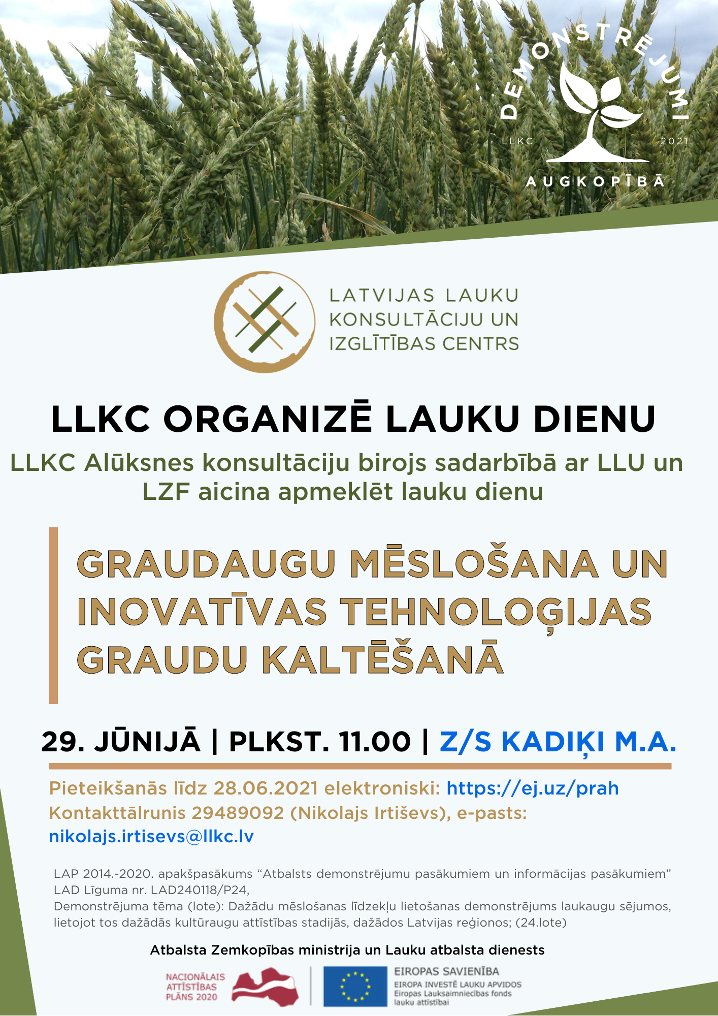 LLKC sadarbībā ar z/s Kadiķi M.A., AREI un LZF aicina apmeklēt lauka dienu