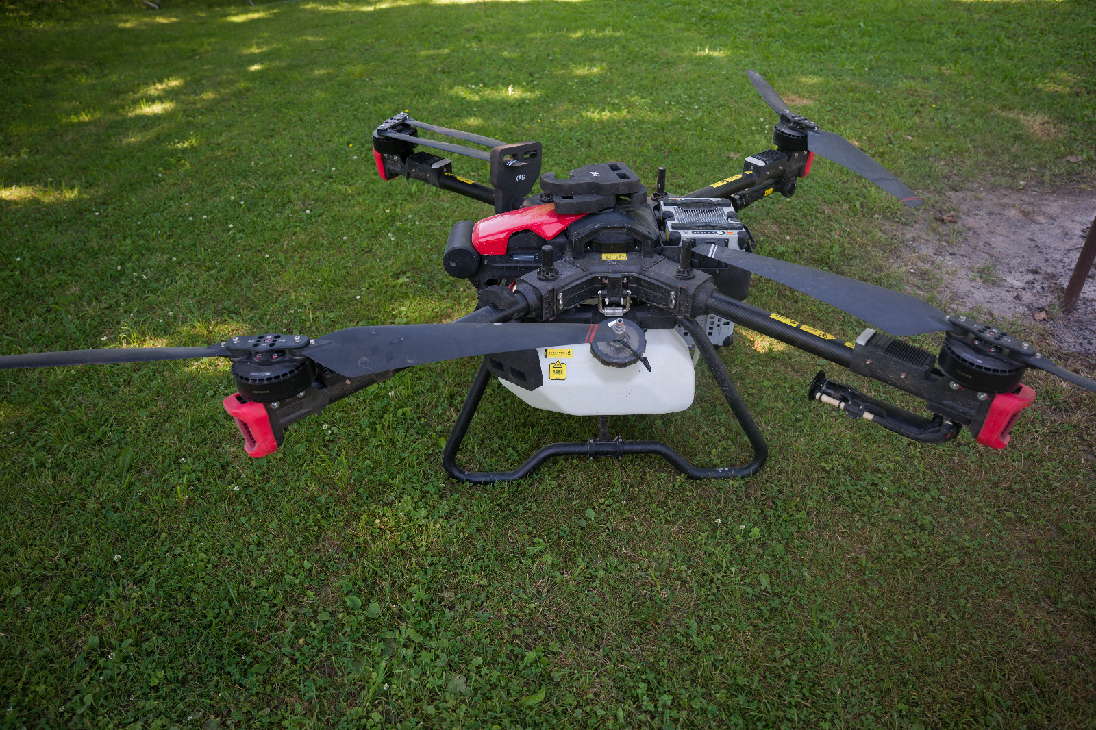 Pēc demonstrējuma apskates dalībniekiem bija iespēja vērot agro dronu darbībā, un z/s “Tūži” saimnieki sniedza informāciju par drona izmantošanas priekšrocībām un pielietojumu. Šogad dronu izmantoja, lai smidzinātu bora mēslojumu uz zirņu sējumiem. Jau pērn un arī šogad tiks izmantots strapkultūru sēšanai labībā pirms novākšanas.