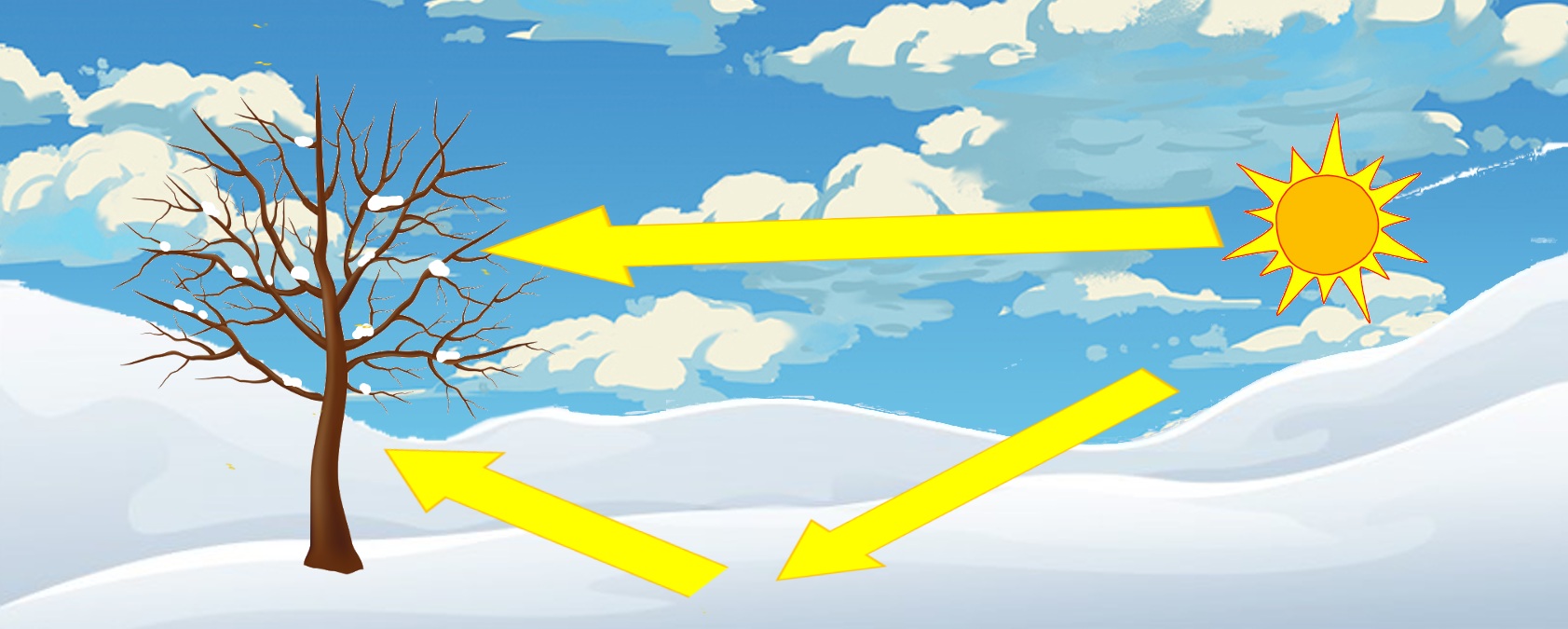 Ziemas otrajā pusē ievērojamus postījumus stumbriem var nodarīt saule. Tas notiek tad, ja ir sniegs un koki atrodas piespiedu miera periodā. Saulei apspīdot koka vainagu, stari vienmērīgi izkliedējas pa to. Bet, saulei spīdot uz sniega, stari atstarojas no sniega un ar lielu intensitāti spīd tieši uz stumbru. Apspīdot stumbru, tas sakarst un tajā sāk cirkulēt sula, bet pēc saules norietēšanas stumbrs ļoti strauji atdziest, kā rezultātā pārplīst miza. Stumbriem arī miza pie sakņu kakliņa mēdz saplaisāt, augot smagās māla augsnēs, un ja ziemā ir krasas temperatūras svārstības no pozitīvām temperatūrām uz negatīvām.