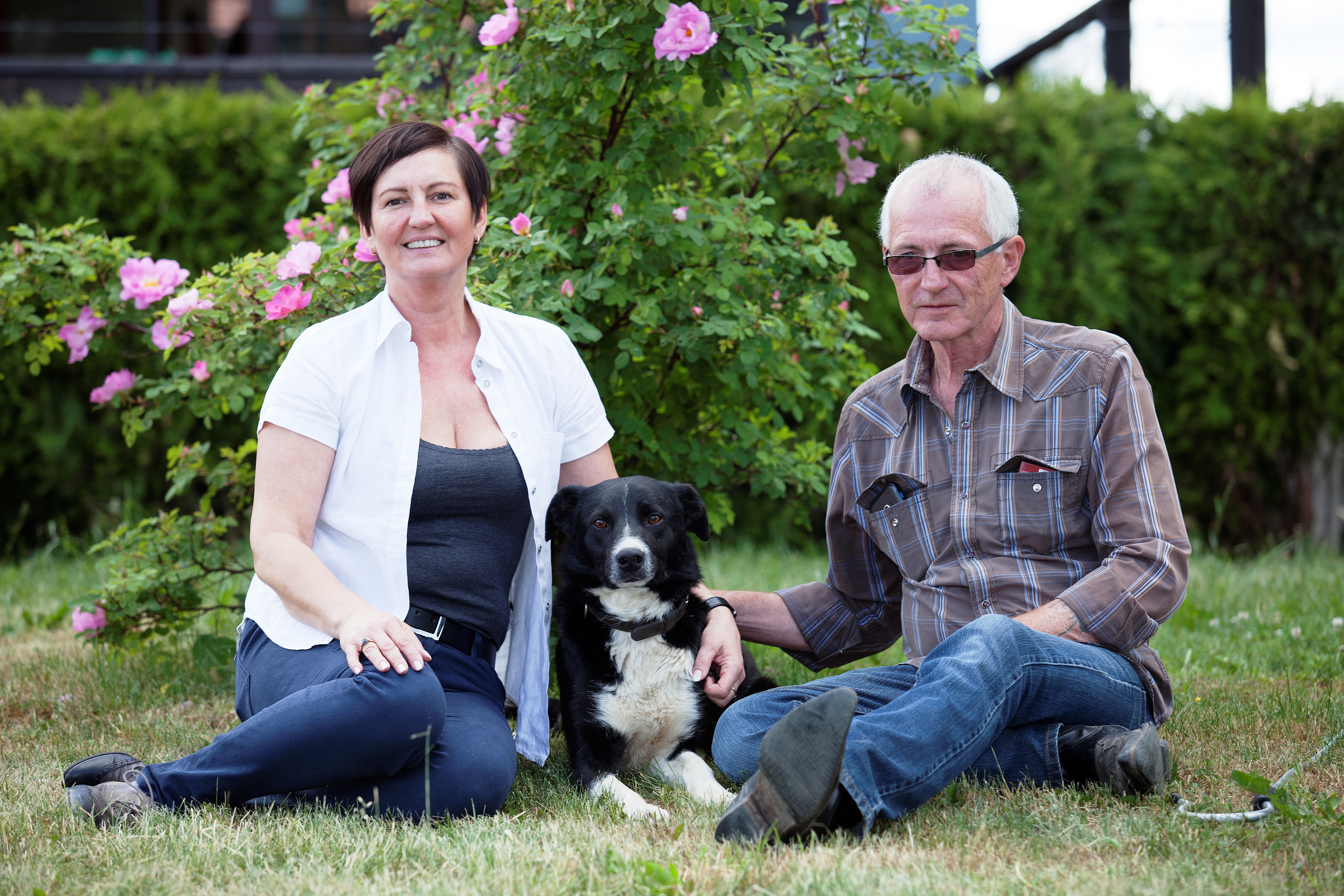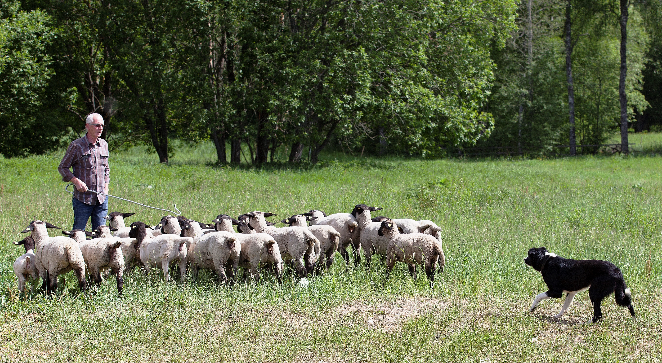Tikmēr grupu, kas devās līdzi saimniekam, gaidīja tiešām aizraujoša informācija un Latvijā neredzēti skati. Saimniecībā strādā pats Joahims un arī nolīgts strādnieks, taču vislielāko darbu veic seši balti skaistuļi – Pireneju ganu sargsuņi, kā arī borderkollijs Hope, kas latviski nozīmē Cerība. Saimnieki atzīst, ka pēc vilku savulaik saplosītajām aitām, kas radījis ievērojamus zaudējumus, cerība uz situācijas risinājumu tiešām bijusi nepieciešama. “Pieņēmām lēmumu iegādāties suņus, kas aitas ne vien ganītu, bet arī spētu nosargāt,” atzīst Joahims. “Gana lomai lieliski der borderkollijs. Viņš ir īsts darba suns, kas šim arodam ne vien speciāli apmācīts, bet nepieciešamās prasmes mantojis paaudžu paaudzēs. Hopu iegādājos Vācijā pirms pusotra gada, kad viņam bija divi gadi, un tas pilnībā izgājis apmācības kursu. Šajā laikā beidzot viens otru saprotam līdz galam, un viņš ir neatsverams palīgs – mierīgi abi tiekam galā ar 200 aitām,” lepojas saimnieks. Jāpiebilst, ka tāda suņa kā Hope iegāde nav lēts prieks – pilnībā apmācīts, tas maksā 3000 eiro.