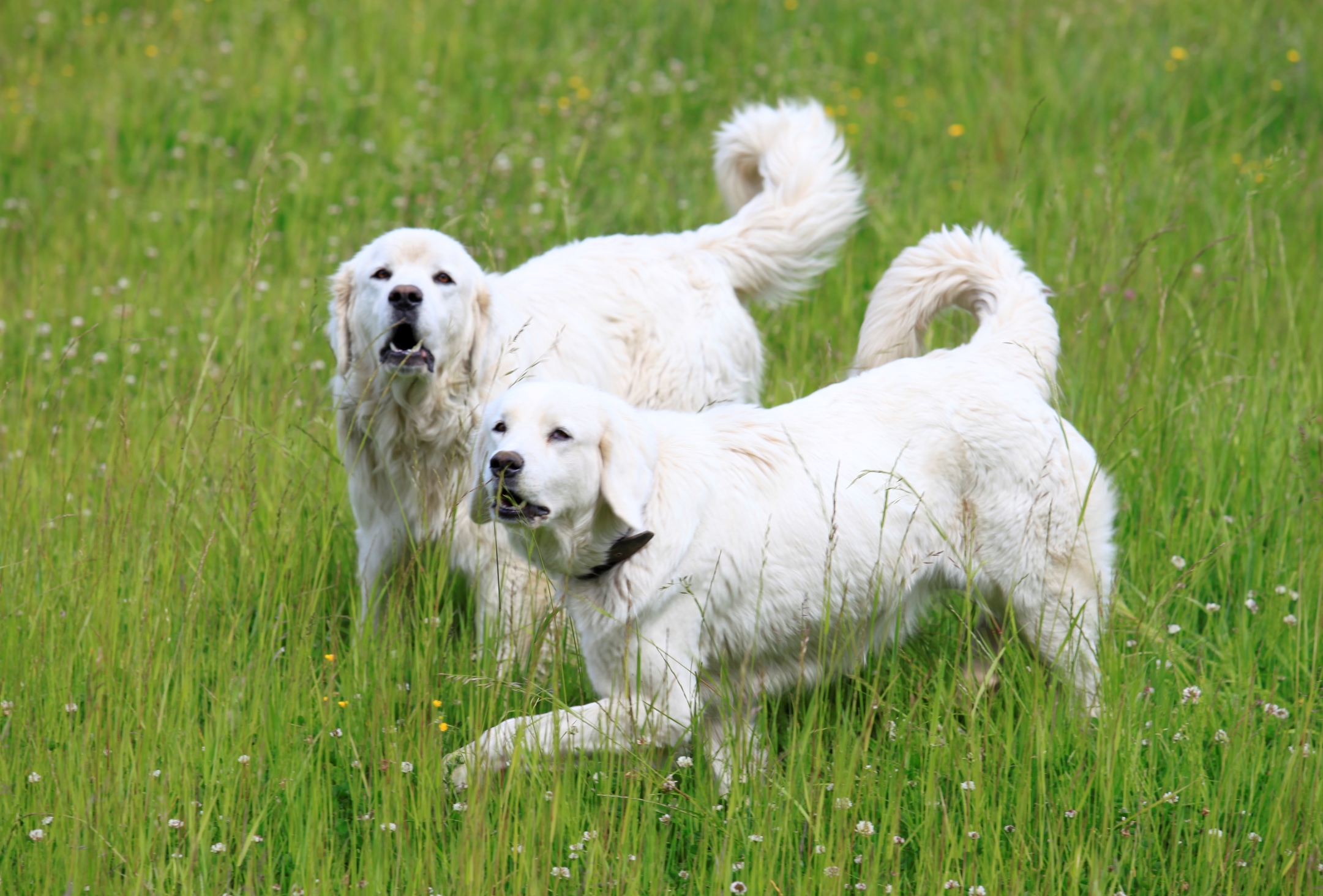 Savukārt Pireneju ganu suņi nevienam, arī saimniekam, gar kājām neglaužas. Šos suņus īpaši neapmāca, jo viņu galvenais uzdevums ir domāt un lēmumus pieņemt pašam, nevis klausīt pavēlēm. Baltie skaistuļi dzīvo kopā ar aitām – vasarā aplokos, ziemā kūtī, palīdzot aitām tikko dzimušos jērus gan aplaizīt, gan pieskatīt. Arī kucēni piedzimst starp aitām, jau no mazotnes uzskatot tās kā savu baru, kas jāsargā. “Viņi domā, ka ir aitas. Inteliģentas aitas. Savukārt Hopi viņi uztver kā inteliģentāko aitu barā,” smaidot saka Joahims. Vienīgais cilvēks, kuru šie suņi respektē, ir tas, kurš tiem dod barību. Turklāt arī barība tiek nodrošināta pie aitām, nevis mājās. Šie suņi nav agresīvi. Ja tuvojas svešinieks vai plēsējs, viņi rej un atkāpjas, turot aitas aiz sevis. Brīdī, kad atkāpties vairs nav kur, tie uzbrūk. Suņu iespaidīgie augumi liek domāt, ka uzbrukumi varētu beigties visai bēdīgi.