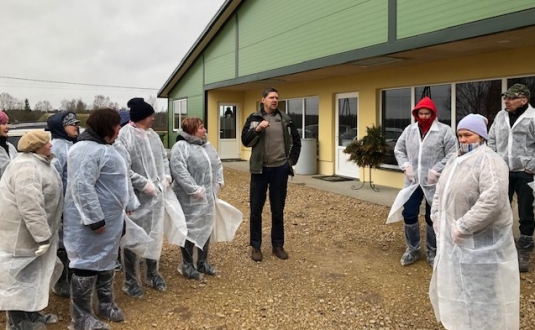 Naukšēnu novada Ķoņu pagasta “Kalnapaipužu” saimnieki Iveta un Sandris Vilisteri uzņēma mācību brauciena dalībniekus atvērti un izsmeļoši stāstīja par saimniecības attīstību un to, kāpēc izvēlējušies pāriet uz govju slaukšanu ar robotiem. Kāpēc tieši izvēle kritusi uz Lely firmas robotu? Grupas dalībnieku uzdotie jautājumi sekoja cits, citam – par teliņu ēdināšanu un pieradināšanu Urban automātiskajā barotājā, par govju, jaunlopu ēdināšanu, par pieredzētajām grūtībām un problēmām, pārejot no piesietās turēšanas uz brīvo. “Kā rīkojas ar govīm, kas 72 reizes dienā mēģina apmeklēt robotu? Ko šodien celtu savādāk, kā veidotu kūts apsaimniekošanu šodien?” jautāja Cēsu puses saimnieki. Uz šiem un daudziem citiem jautājumu tika atbildēts. Paldies saimniecībai par dalībniekiem veltīto laiku un sniegto pieredzi un bagātīgām zināšanām.