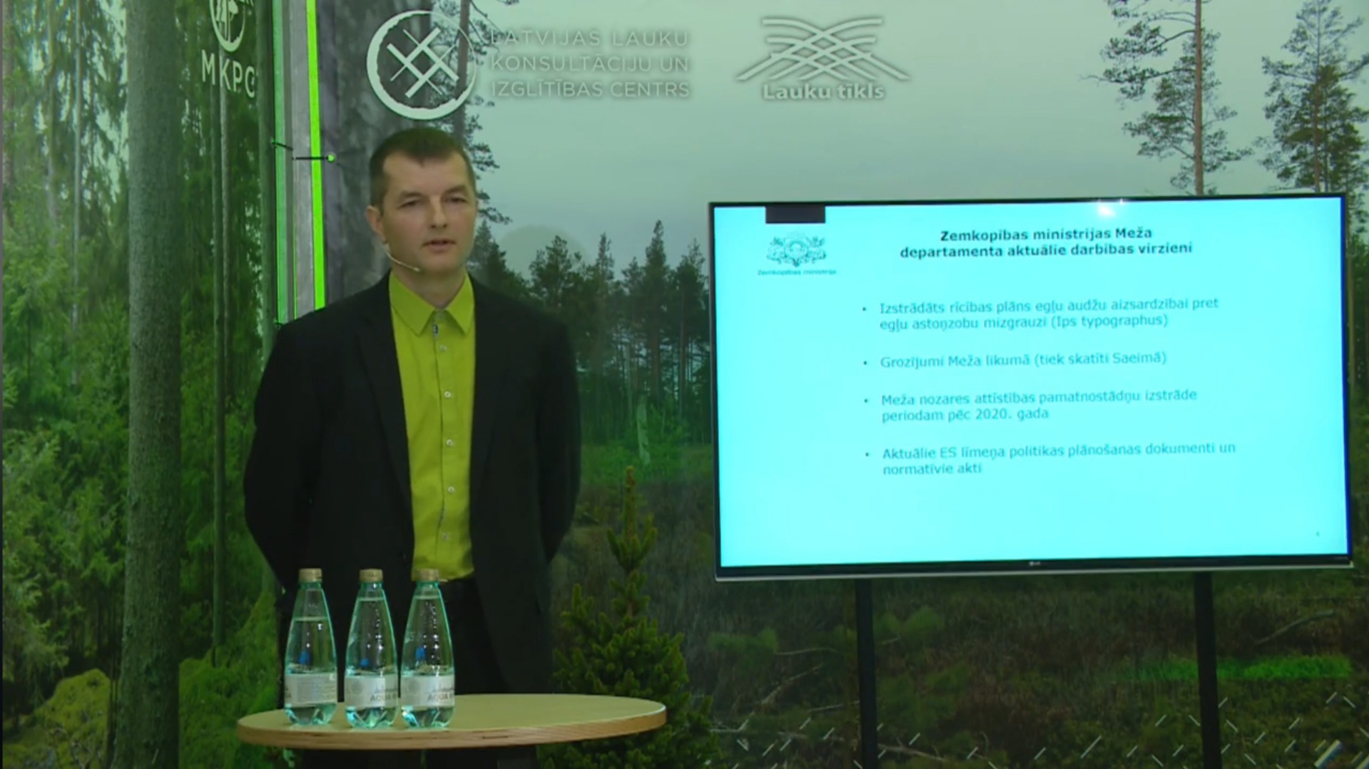 Latvijas Republikas Zemkopības ministrs Kaspars Gerhards: Pandēmijas laiks rada iespaidu arī uz meža nozari, tas ir nopietnu izaicinājumu laiks apgūstot jaunās tehnoloģijas, taču mainās arī globālais tirgus. Mežu daudzums Latvijā palielinās, palielinās arī darbs, ko meža īpašnieki iegulda sava meža kopšanā un uzlabošanā. Nākamā daudzgadu finansējumā Zemkopības ministrija ieplānojusi arī atbalstu mežsaimniecībai, meža kopšanai.